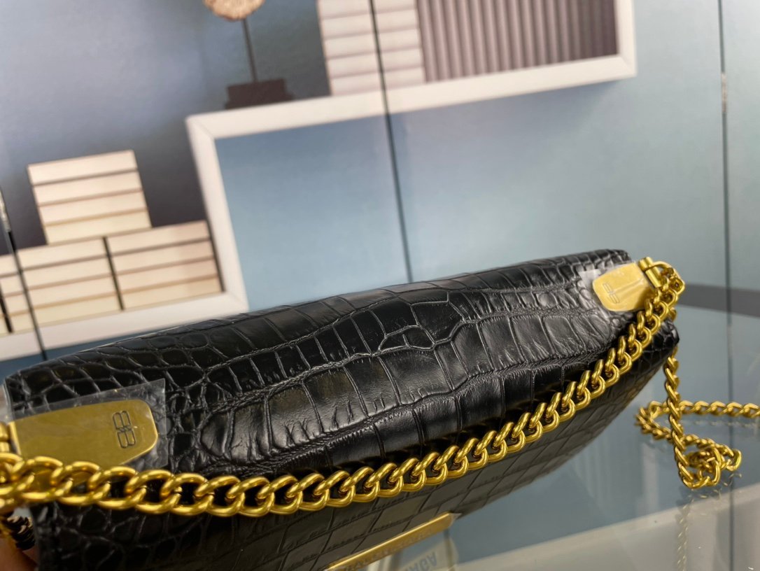 The newly launched small square crocodile pattern bag. The design of the chain length allows it to be worn on one shoulder or crossbody. The simple crocodile pattern combined with the logo mark instantly fills it with a high level of sophistication.