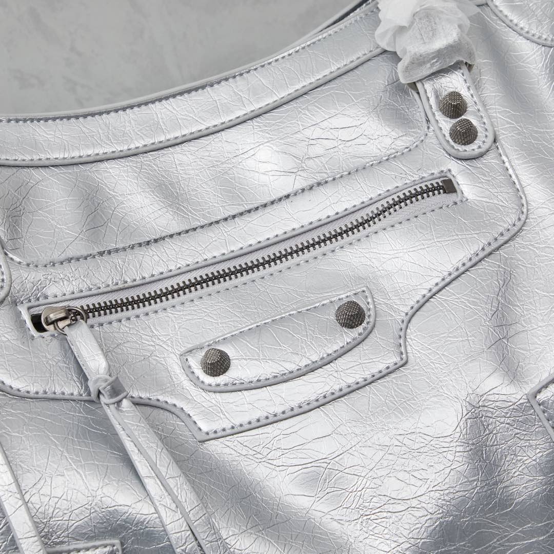 These three sizes are all from looking at the Balenciaga Giant City series. Motorcycle bags are really too convenient. Whether going out, boarding a plane, riding a bike or driving, it is very convenient to take things. The leather of motorcycle bags is very soft and delicate, and the feel is also very good. The capacity of motorcycle bags is very sufficient, and it is also very casual and free to match. Large size: 45x30x11.
