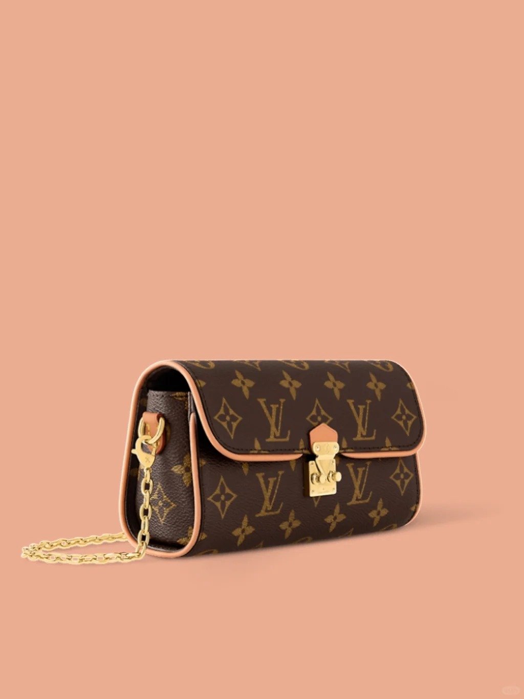 Signature details include the gleaming S-Lock closure (a Y2K throwback), a chain with subtle LV Circle hardware, and contrasting VVN leather trim that adds warmth. The adjustable, removable chain offers three wears: crossbody for hands-free days, shoulder-length for casual outings, or detached for a sleek hand-held pouch.