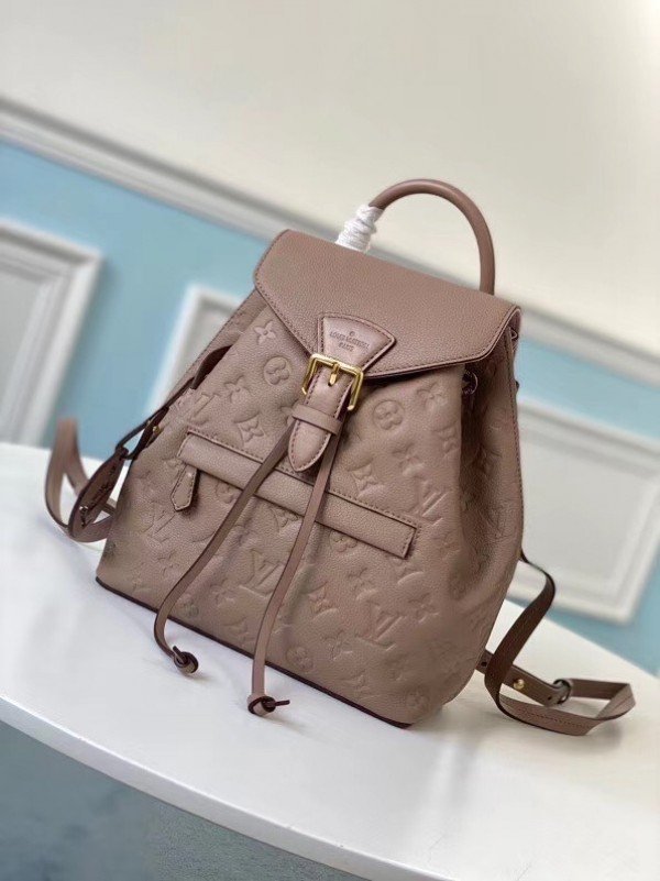 Louis Vuitton  LV Montsouris Backpack Monogram Empreinte M45410 BLV012. Louis Vuitton reinterprets the House??s iconic Montsouris Backpack from 1994 in Monogram Empreinte embossed leather. The pack??s pure lines are enlivened with a vintage-style golden buckle and a playful yet subtle LV charm. Two adjustable leather straps make this body-friendly bag comfortable to carry while the zipped outside pocket gives easy access to essentials.