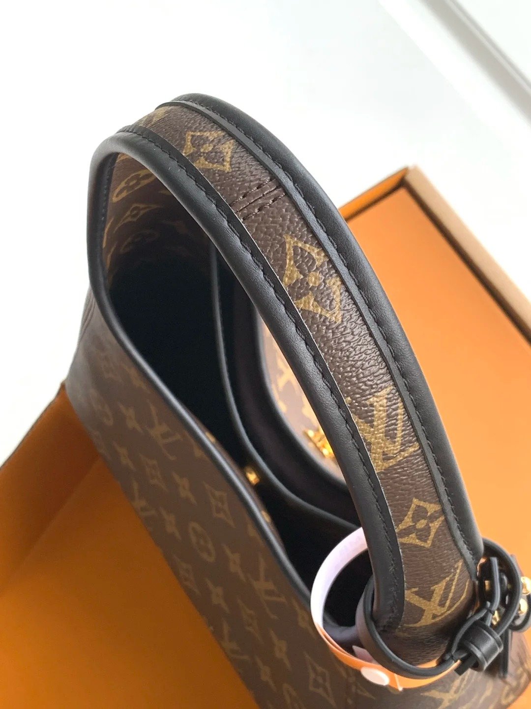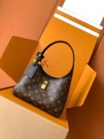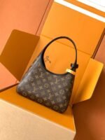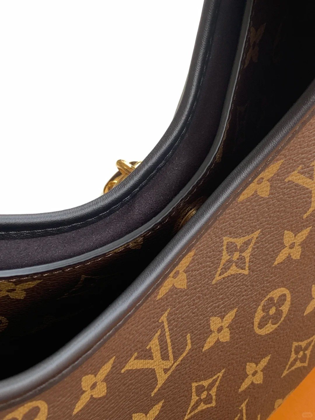 这款包袋源自2018年的标志性Flower Hobo包,将复古Monogram帆布与现代U型包身巧妙融合。深色皮革饰边和黄铜锁扣散发复古魅力,磁吸式开合和隐藏式前袋则让日常杂乱无章的物品井然有序。22厘米固定肩带,完美契合亚洲人身材——轻松贴合臀部,不易滑落,无需调节。