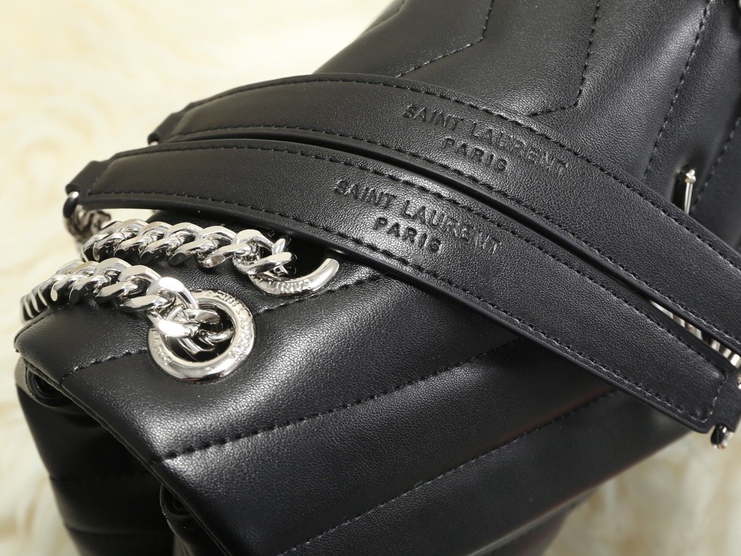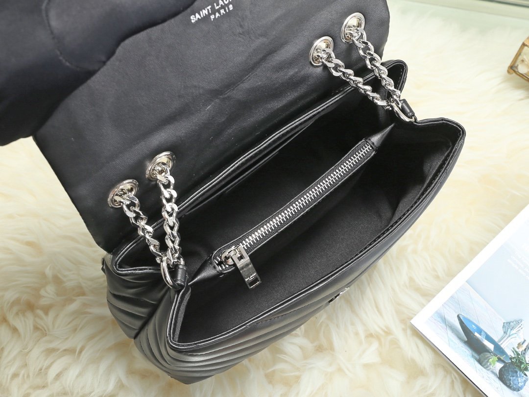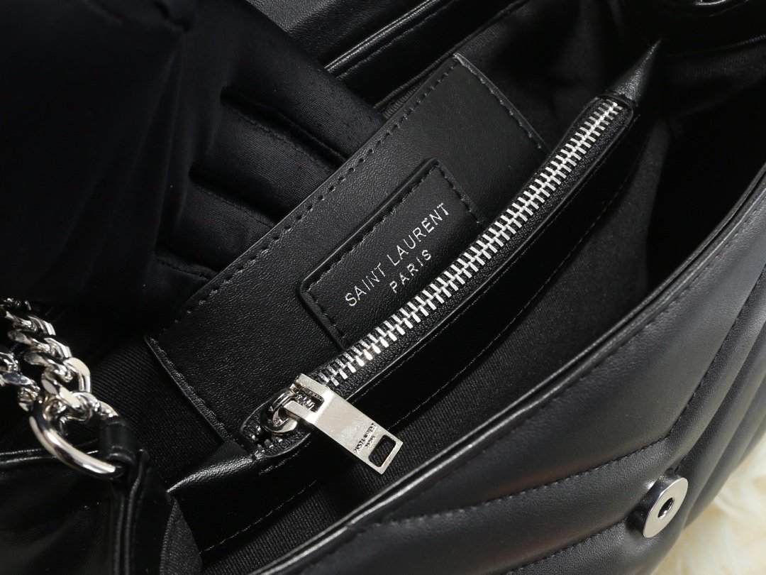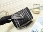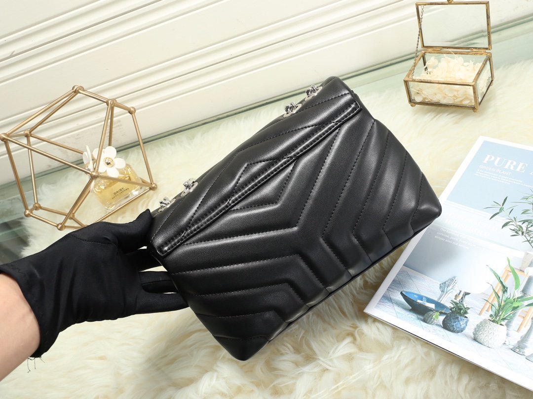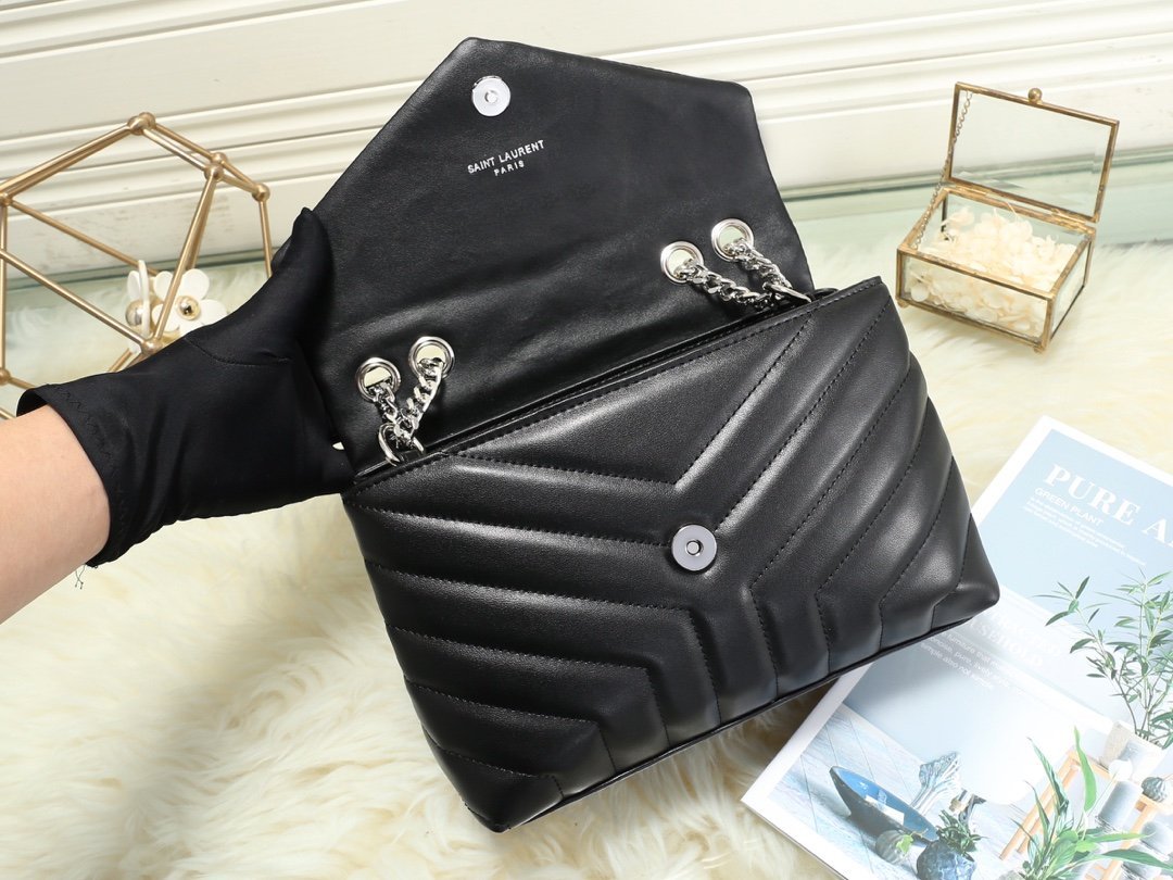 Popular calfskin Loulou medium-sized genuine leather shoulder bag from Saintarent. Design details: shoulder strap with multiple wearing methods, flap decorated with snap buttons, envelope style, embossed flower print, silver hardware, YSL logo lock, shoulder strap pendant: 57 cm! Model number 5312#!!! Silver buckle size: 25x18x10cm.